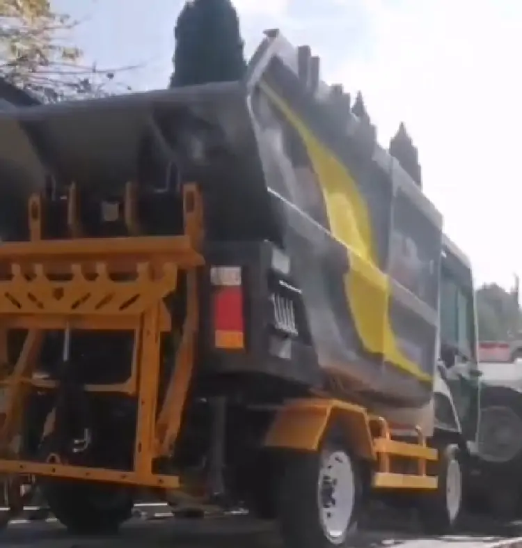 發(fā)往某環(huán)衛(wèi)公司的電動垃圾清運(yùn)車裝車完畢準(zhǔn)備出發(fā)